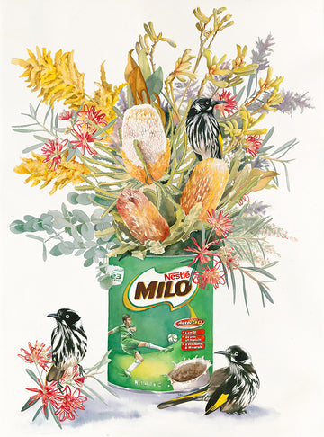 Polla’s early work featured bold acrylics, exploring themes of commercialism and pop culture. However, her artistic journey took a profound turn in 2009 following the sudden loss of her partner of 15 years, just months after the birth of their first child. After pausing her creative practice for a year, she returned to painting, seeking healing and connection through art. She rediscovered her roots in nature, this time working primarily in the delicate medium of watercolour.