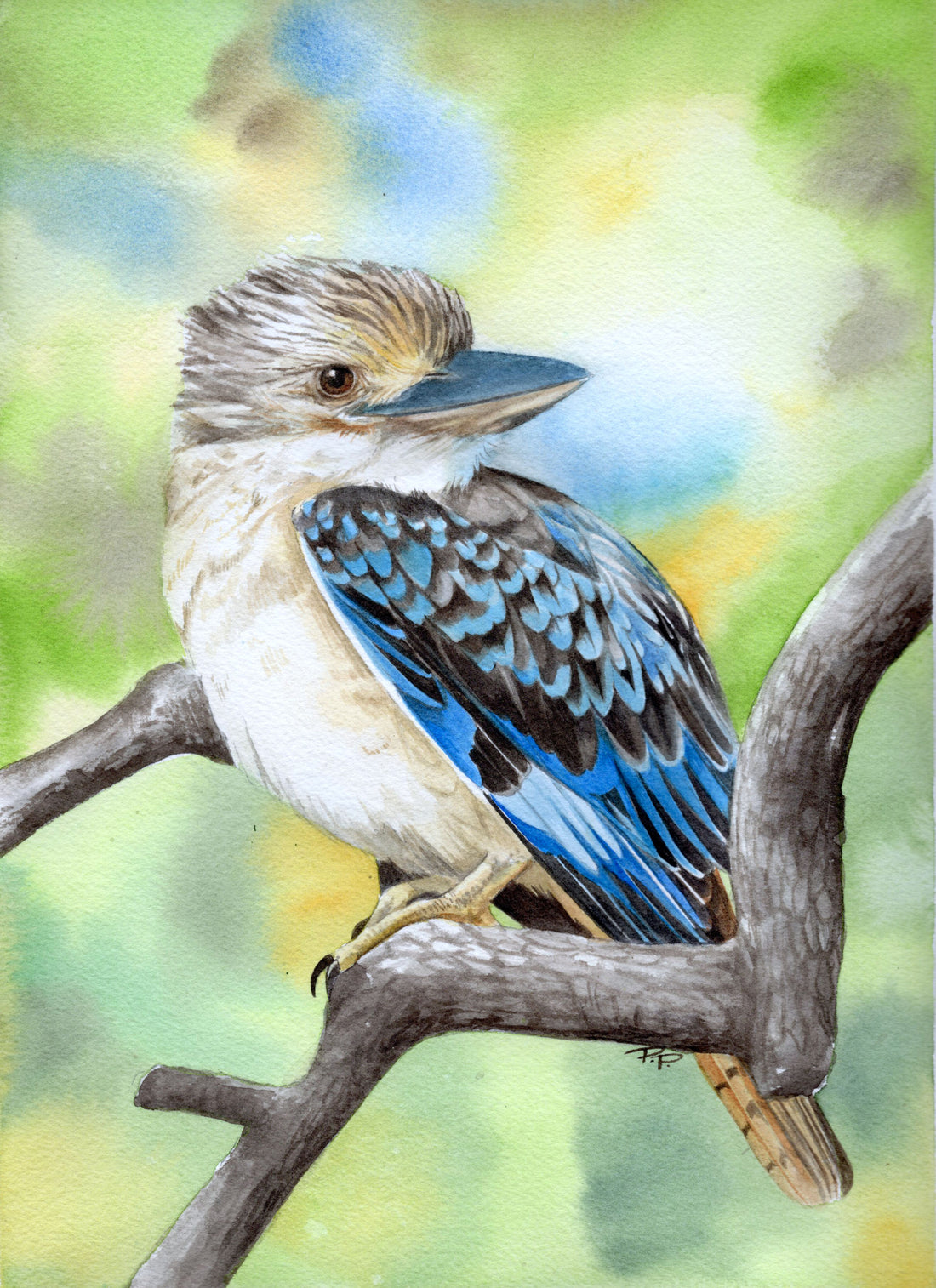 A native Australian bird belonging to the Kingfisher family, this realistic watercolour painting of a...