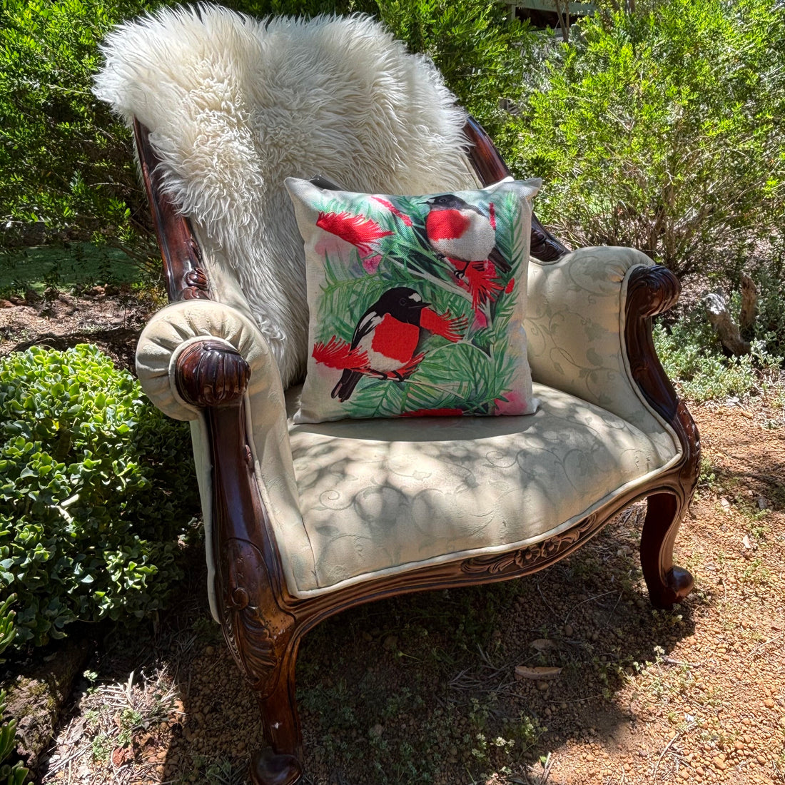 Scarlet Robin & Grevillea Cushion Cover
