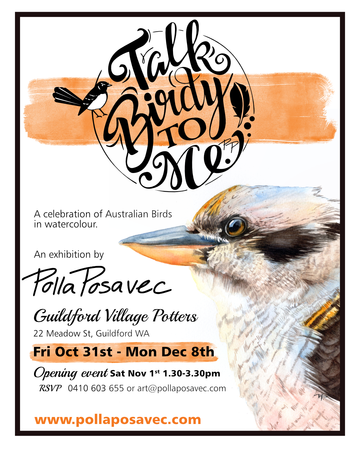 If you can't make the opening, Guildford Village Potters opens 7 days a week and along with locally made pottery from many talented artisans, it's a great destination for your Christmas shopping, as well as checking out my birds! My show is there until December 8th.
