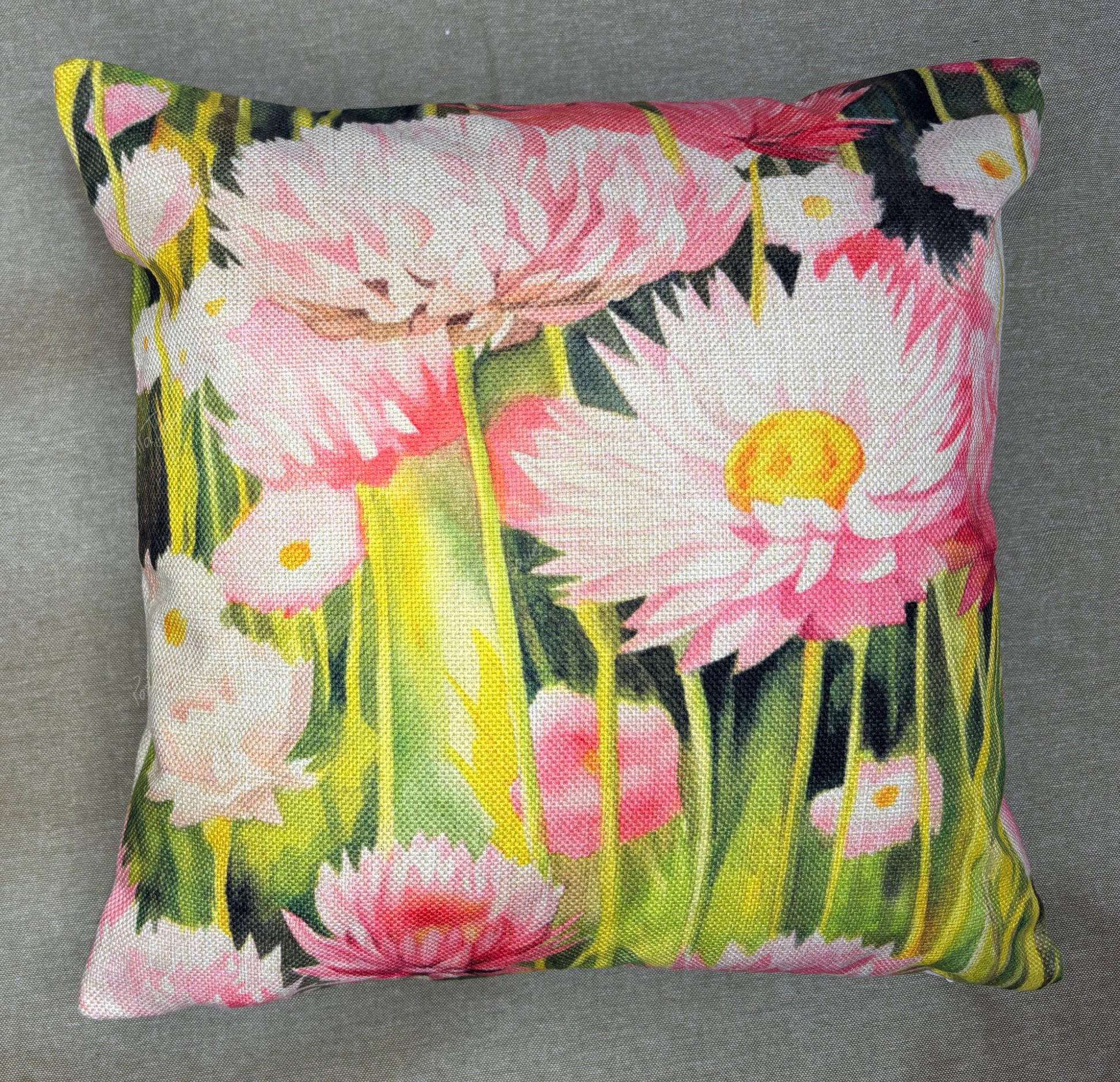 This cushion will bring bit of spring all year round to your interior. This cushion features a print from my original watercolour painting of everlasting flowers, also known as paper daisies, an iconic Australian wildflowers.